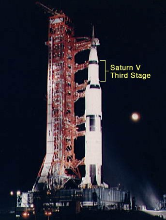 Fotografie rakety Saturn V s vyznačeným třetím stupněm, který pravděpodobně