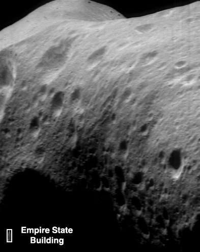 206 km. Na snímku je zachyceno asi 10 km (na výšku) povrchu planetky. Pro