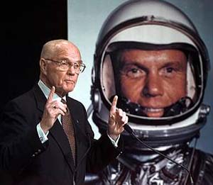 John Glenn se narodil 18. července 1921, v roce 1944 vstoupil do armády a jako pilot bojoval ve druhé světové válce i ve válce v Koreji. Zúčastnil se 149 bojových misí a byl jedenáctkrát zasažen nepřátelskou palbou. Později pracoval jako testovací pilot a jako první absolvoval bez mezipřistání nadzvukový let přes celé Spojené státy, z New Yorku do Los Angeles. V roce 1959 byl vybrán do prvního amerického oddílu kosmonautů. Během svého historického letu 20. února 1962 strávil ve vesmíru necelých pět hodin. V roce 1964 byl povýšen na plukovníka, poté opouští NASA a odchází do civilního života. Stal se úspěšným politikem a od roku 1974 je nepřetržitě senátorem za stát Ohio. Nyní se rozhodl již nekandidovat a jeho funkční období právě skončilo lednem 1998.