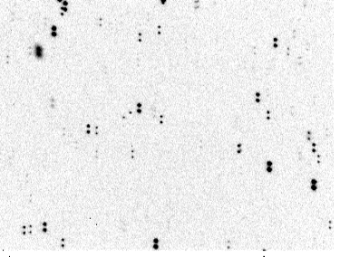 This is a co-added image of two R exposures of 1993 MO, a 18th mag Amor asteroid, taken at interval of about 20 minutes. While stars are displayed as vertically shifted pairs, the pair corresponding to the asteroid is distinguishable by different position angle.