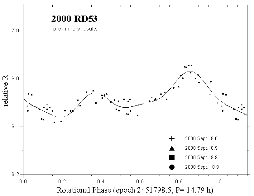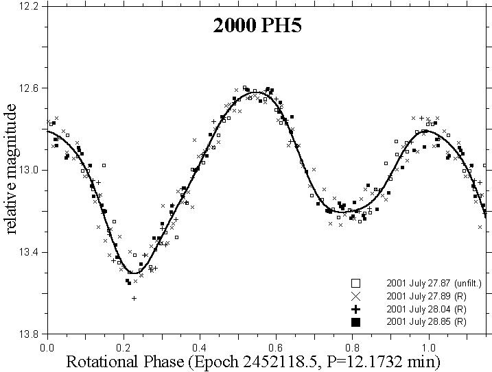 New page on binary NEAs has been added. This composite lightcurve of 2001 OE84, a large superfast rotating monolithic Amor asteroid is an example of data resulted from the Near-Earth Object Photometric Program conducted at the Ondrejov Observatory . Main tasks of the NEO project are: